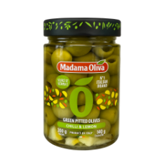 MADAMA OLIVA GREEN PITTED OLIVES - CHILLI & LEMON 300G
