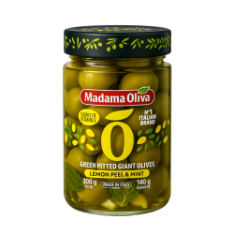 MADAMA OLIVA GREEN PITTED GIANT OLIVES - LEMON PEEL & MINT 300G