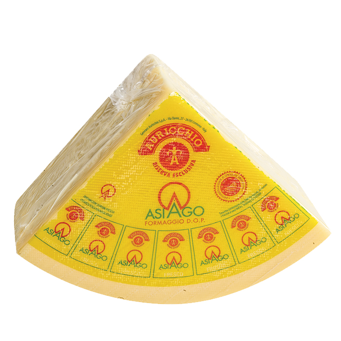 Auricchio Asiago, is made with cow’s milk cheese, has a natural rind and is produced only on the Asiago plateau in the Veneto foothills in Italy.