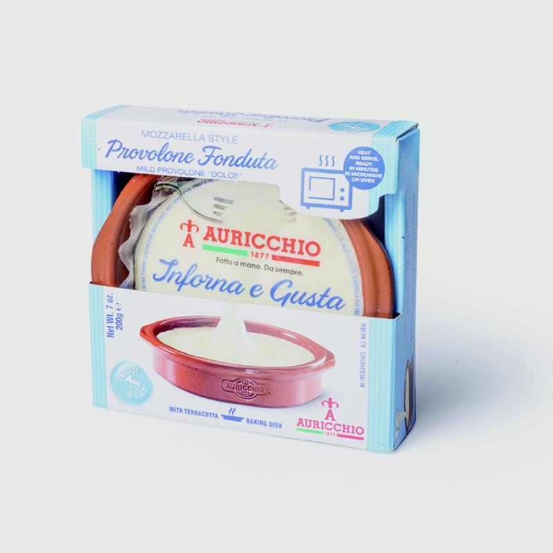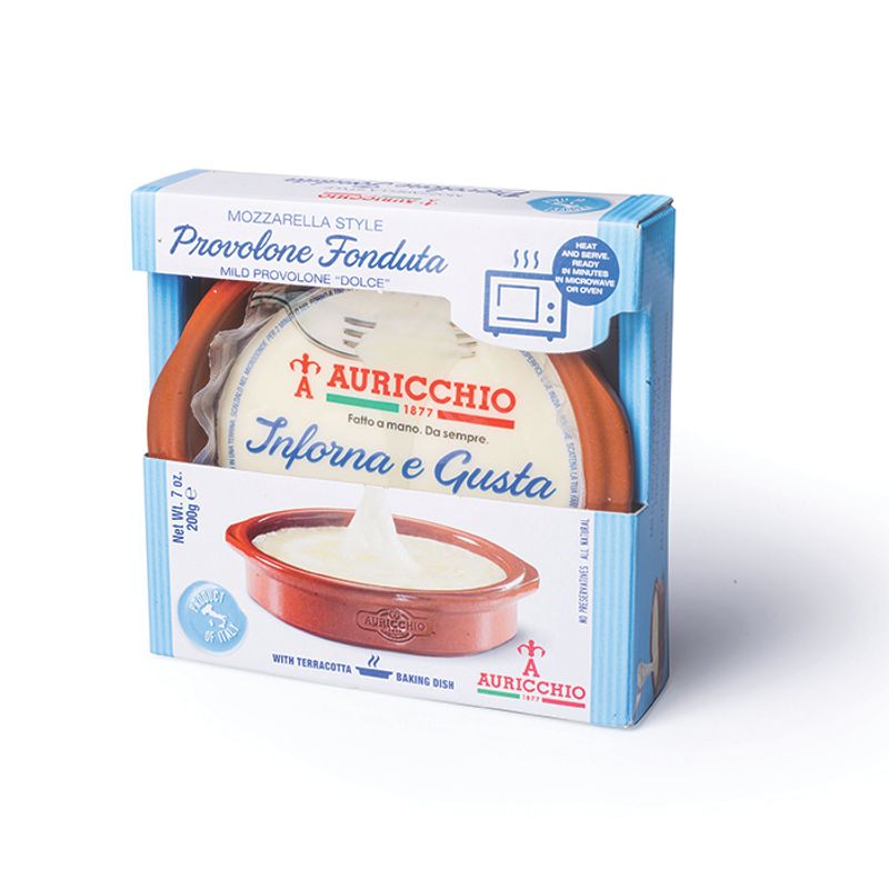 Made with Auricchio Provolone Cheese that is placed together with an exclusively-made earthenware bowl, which can be melted in the oven or microwave. This unique cheese dish is the Italian version of fondue. Easy to use right from the oven to your table.