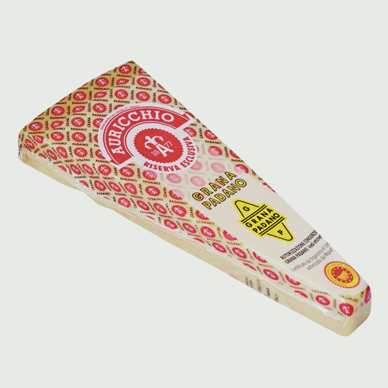 Auricchio Grana Padano is one of the most popular and renowned D.O.P. Cheeses of Italy. It is made from unpasteurised, semi-skimmed cow’s milk in Parma, Italy. Being a D.O.P cheese means it guarantees the highest quality and is produced in the Po River valley, Italy using traditional methods. Each and every wheel of Grana Padano is made using a unique procedure, which is repeated time and time again in exactly the same way.