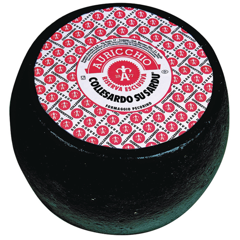 Pecorino Collesardo Sardo Susardu made in Sardinia and has a black in rind. It is made from local sheep breed raised on the inland mountain that is rich in herbs and green grass.