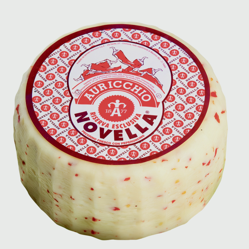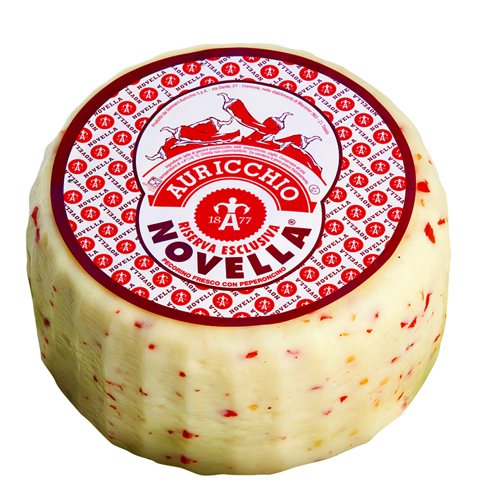 Pecorno Caciotta Novella is made with sheep's milk and dotted with red peppers. Made with sheep’s milk and has an edible rind.