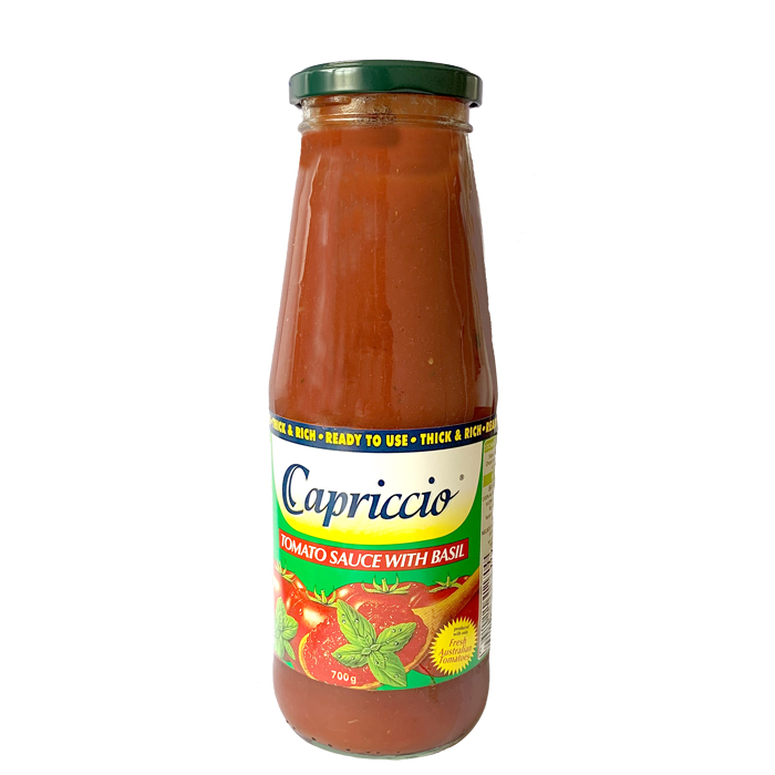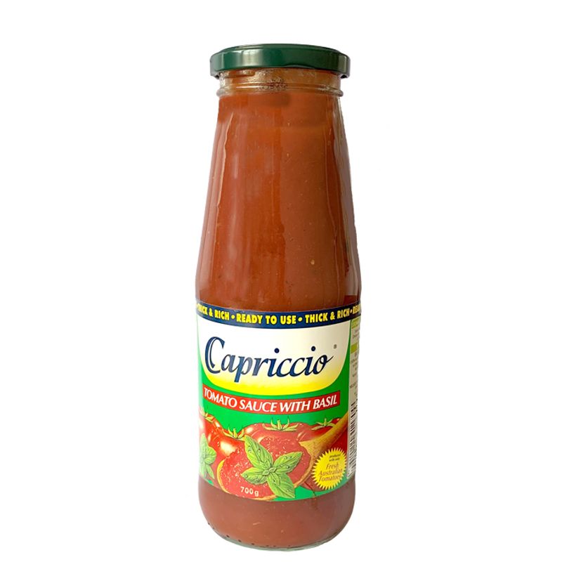 Capriccio Tomato sauce with Basil, is an Italian classic! Blended with Passata and basil leaves to create a generous and delicious sauce. Perfect for any quick recipe, it is a wonderful match for spaghetti dishes: a simple yet generous combination! It is also Gluten Free.
