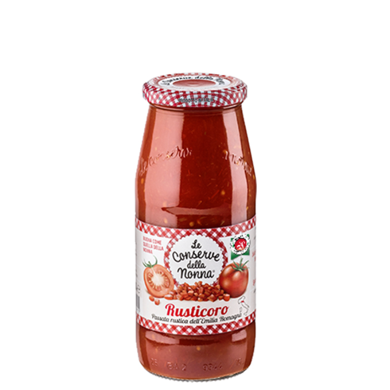 Le Conserve Della Nonna Rusticoro is a ready to use thick tomato sauce that is quick and easy to use, because it only needs to be heated.