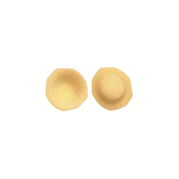 La Molisana Specialty shapes are rich, inviting and exclusive. Each pasta shape is inspired by the unique regions of Italy. Made with the finest Durum Wheat, Semolina so rich and full of flavour and high in protein content which gives the pasta its unique golden colour and unmistakable wheat flavour. Extruded through traditional ‘bronze dies’, for that homemade rough texture that helps pasta to absorb and hold on to any sauce and cook to perfection every single time and impeccable cooking resisitance. Orecchiette Pugliesi, traditionally from Apulia region in the south of Italy. The shape is a round disc with a slight indent in the centre, makes them perfect for holding sauces.