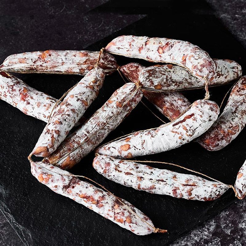 Cacciatore Calabrese is a versatile, dry aged salami that can be served thinly sliced for sandwiches or toppings, or served as an appetiser with cheese and a dry white wine.